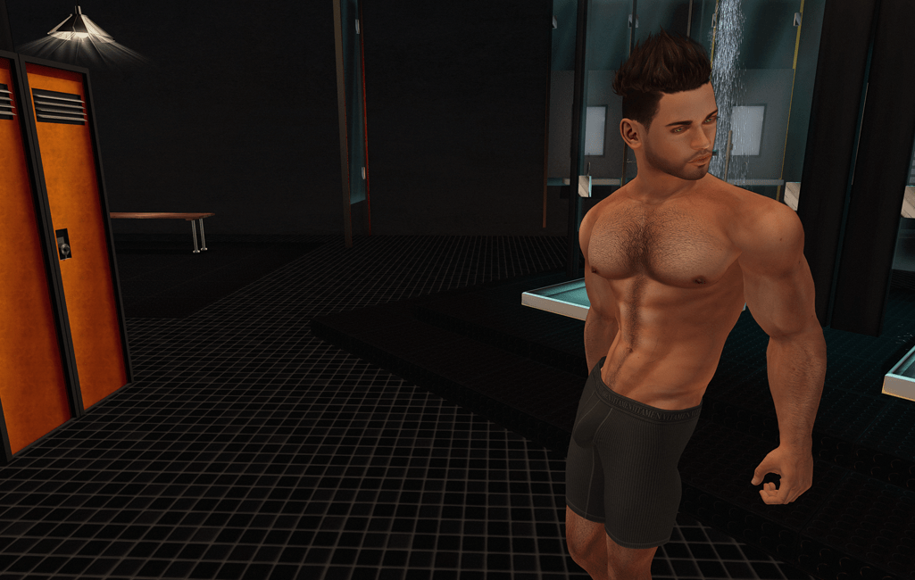 At the time that I am publishing this post, 7 Deadly S[k]ins is temporarily offering free group membership. With their monthly group gifts and overall generosity, this brand is a veritable treasure trove of affordable skins. From time to time you will have to purchase a particular body applier for example, to match a free mesh head applier. If you like their skins, it definitely is worth sacrificing a groups-slot for. I would describe their body skins as not extremely realistic but rather stylised with nice details. The skin applier that covers the head is named Jaxx and the applier for the body is their Caramel skin tone. It is the smooth version in combination with body hair which I borrowed from a Nivaro skin. Note that not everything lines up perfectly, but I find that is often the case with generic Omega appliers. At least there are no ugly toe shadows, just a bit of a nipslip (oh! a new meaning for that word!)