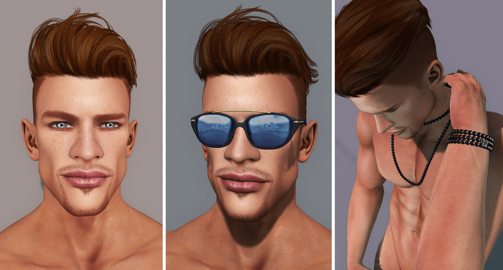 - Invictus – Glasses: This is not the best pair of shades in SL, but not the worst either. You get three colour version in the box and I’m wearing the blue one here. Funny detail: one of the temples of the black version is actually blue.