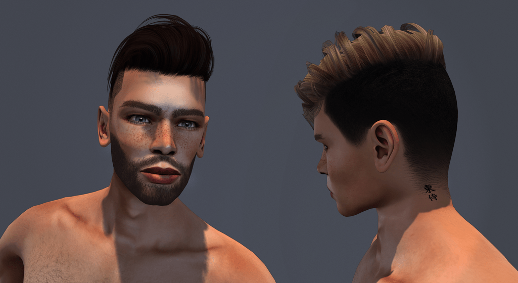 - Cheeky – Kanji hairbase and tattoo: This is a nice full hair base with an interesting faded effect on the neck. Sadly, while it is possible to wear the tattoo separately, the hair base cannot be worn without it. In the applier hud you will find Catwa and Omega buttons.