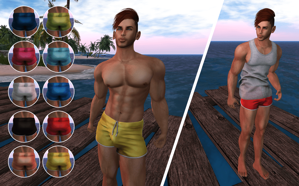 More importantly, there now is a nice pair of shorts available just for this body, which you can wear with or without the new tank top also made for the Exmachina avatar. The shorts and tank top are L$ 350 each and for that you get both of these items in 10 different colours. Spicy detail: the shorts react to the shape slider for the so-called “package” (#duffelbag!). Meanwhile the body is still the same price as it was at its initial launch, which is L$ 3.990.
