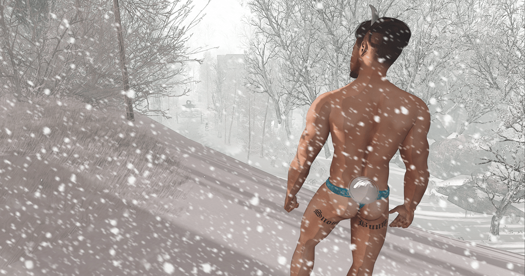 There’s a somewhat peculiar, though I suppose seasonal tattoo from Facade which says “Snow” on one thigh and “Bunny” on the other one. I wasn’t sure what to do with that, so I tried to make sense of it somehow.