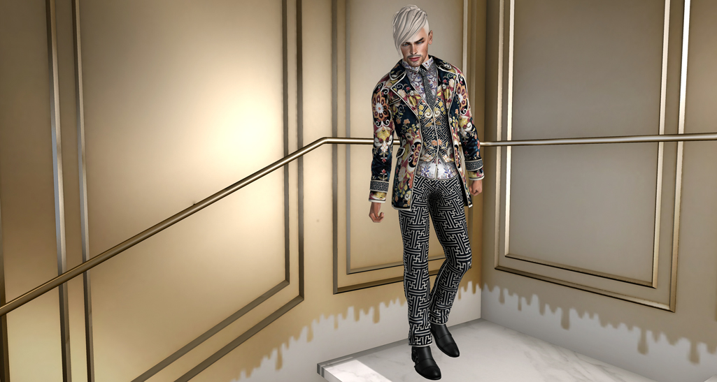 Stray Dog was a bit quick to remove their previous gift, about two weeks before the release of the new issue of L’Homme Magazine, but it’s nice to see they’re donating a group gift again for the current issue. The Zack skin in Buttermilk tone has very light eyebrows, perfect for achieving a Scandinavian look and comes with some options like lipstick marks, bruises on the neck (from wearing a choker) and freckles. The applier only works with Catwa mesh heads and you will have to purchase the matching body applier if you don’t have it yet. Stray Dog has appliers for the Signature and Belleza mesh bodies which all automatically come with body hair, freckles and tan line options. In this example I’m using the Belleza body with the Catwa Stanley head, my own shape and the ‘Haunting’ hairstyle by Stealthic.