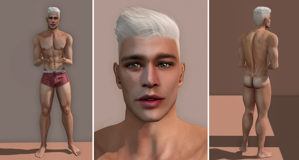 First let’s take a look at skins. There are two appliers that work with the Geralt head at the Signature Event. There’s ‘Asher’ from Birth, which I already showed very recently on the Gianni head and there is ‘Aron’ by Not Found, which you can see in the picture above. Not Found don’t have their own body appliers, but they’re compatible with Clef De Peau skins, which have been recently updated with options like freckles and tan lines. The nipples are where they’re supposed to be and there are no nasty toe shadows, but the clavicles and shoulder blades aren’t in an optimal position for Geralt. The ‘Aron’ head applier makes up for this with a bucket load of fresh-faced cuteness and I sure do appreciate the tan lines (wiggle wiggle wiggle).