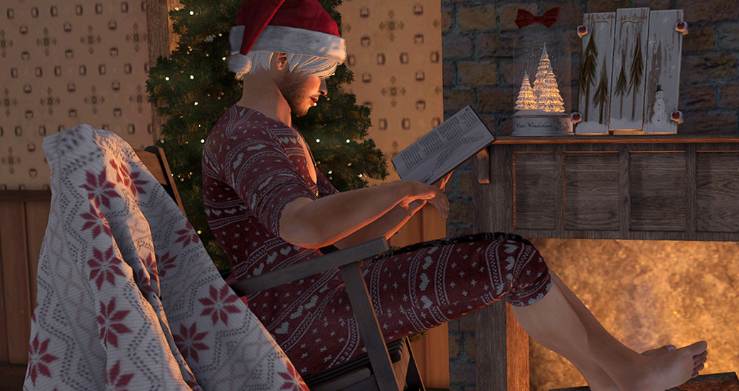 First up is a sweat little rocking chair with a throw from Goose. The scene I put together for it really makes me wish I had a fireplace in my real life apartment. I’ve tried building a camp fire, but the neighbours really don’t like it. Oh well.
