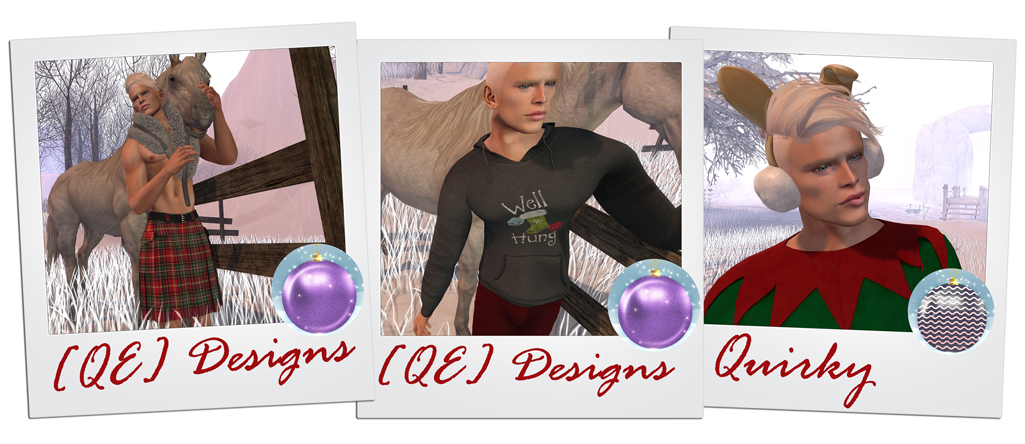 Further investigating of the store list for the Snowbound hunt showed me I was missing a kilt and hoodie from [QE] Designs I really wanted. Both come in lots of different sizes to work with most, if not all avatars. I also had my eye on a funny pair of fluffy ear warmers with golden bunny ears by Quirky.