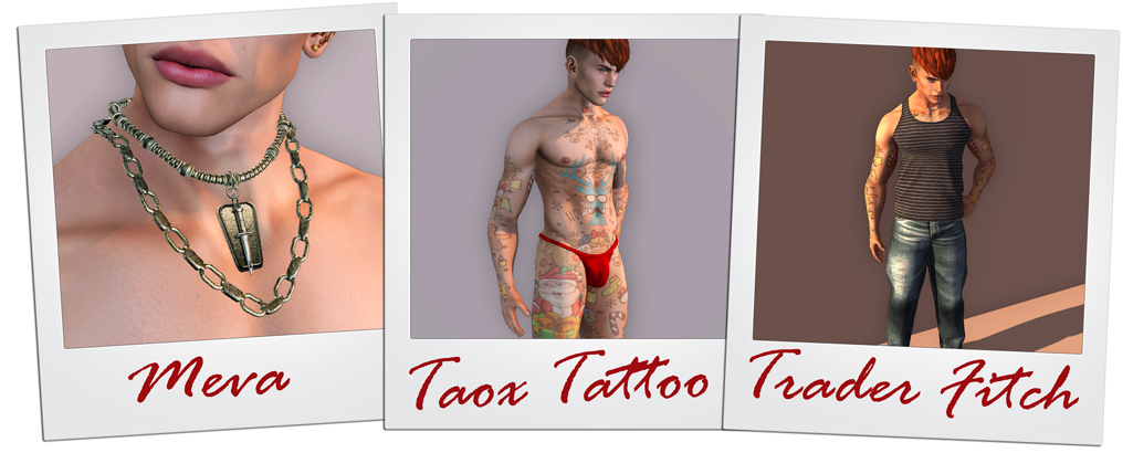 If you don’t mind venturing onto a gay adult sim, you can head on over to Niaro Island and take a look under Trader Fitch’s Christmas tree. He’s got some goodies for different mesh bodies. Fitch says the quality seems decent to him and I concur.