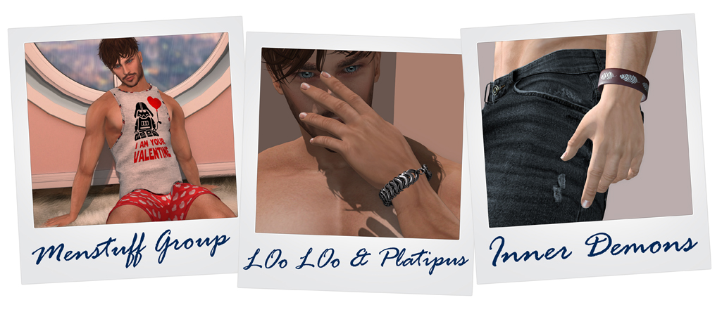 Enjoy the Menstuff Hunt! The full list counts 66 stops, so you can really kill some time with this, or at times seriously diminish your will to live if you have a love hate relationship with hunts. You have until the end of February to finish. Some items are 1 L$ and others are totally free.