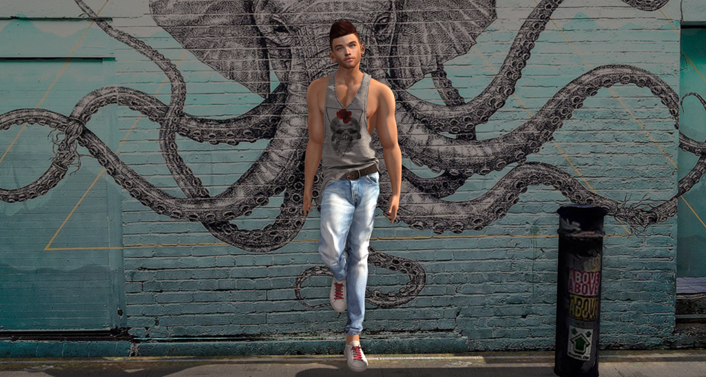 For something a lot more casual, you can find the “Strong” jeans and tank top at Invictus. They come in TMP size, so you’ll be able to go topless, but I did notice a tiny bit of clipping at the ankles. The Deadwool Chase sneakers are a good option with this outfit.