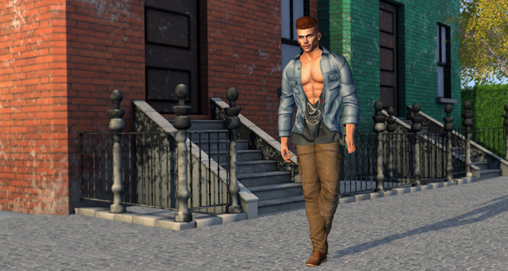 The current round of the Men Only Monthly event has been on for a couple of days and my NX-Nardcotix David mesh body had a sudden yearning for some new outfits. Coincidentally, styling my avatar is my favourite thing to do in SL, apart from some shameless slutty behaviour, but that should be something for a different blog (Sex & The Sim City?).