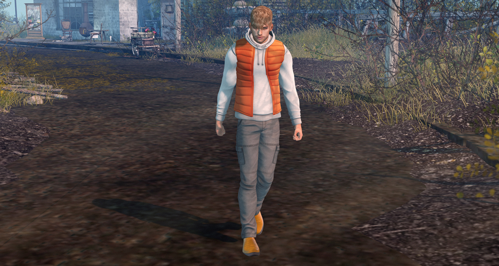 If you’re in the mood for something more layered then Hevo has got you covered with their puffer vest and hoodie. I’m using the Gianni size and paired it with NX-Nardcotix cargo pants and boots from their store. This is the perfect outfit for wandering around on those sims that have a rustic and not quite so warm feel about them.