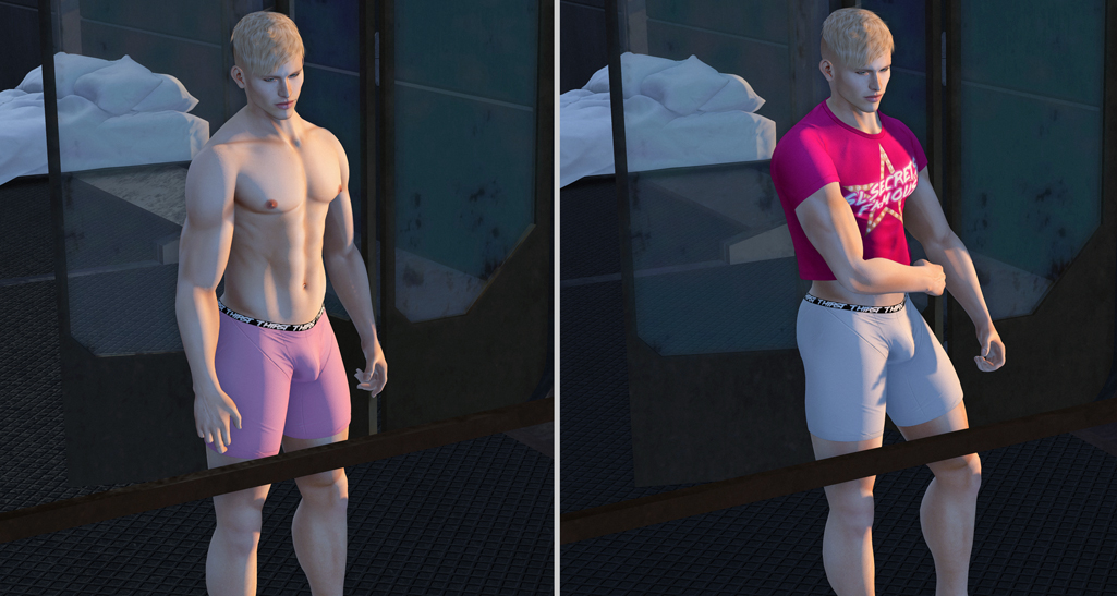 Hooray! Smart people who subscribed to JOCKD, which is a kind of underwear club subscription box thing at Thirst, will have received their goodies at the beginning of this week. As usual the items will be available for the gen pop on the 12th of the month. At that point you’ll miss out on some exclusive textures and you’ll pay a little more, but personally I think the boxes are always good value for money. If you pre-order the price is L$400, the full price is L$600. That’s not bad for two completely different underwear items usually with about 6 to 8 textures each. This month the subscribers actually got an exclusive 3rd pair of undies that won’t be included in the set.