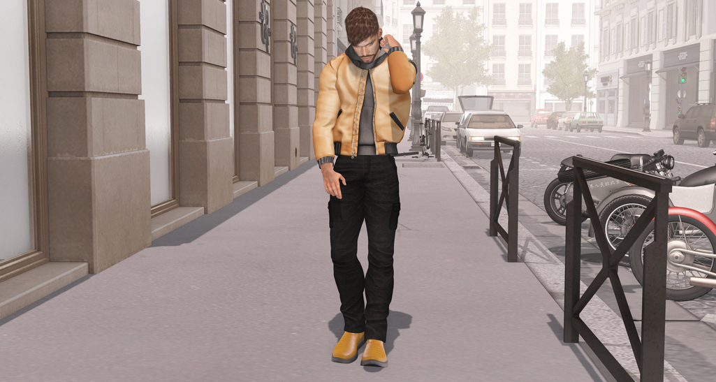 First outfit: bomber jacket by Minimal at TMD, paired with the Finlay cargos and Gideon boots, both from NX-Nardcotix.
