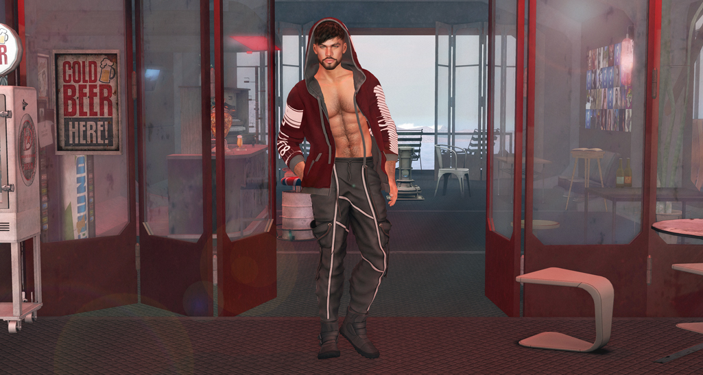 It’s a new skin by Birth, named Drogo, inspired by the Game Of Thrones character by the same name. This skin is currently available at the Last Winter event. I have no idea how much longer the event will last at this point, but the skin should eventually show up at the Birth store afterwards. You can achieve a stronger Drogo look by using the shape and make-up that comes with the skin and getting yourself a goatee, but I went for a more every-day look. It’s shown on the Catwa Stanley head, with Modulus Bailey hair, Avi-Glam Solstice eyes and L’etrê Basic mesh ears. The Birth Omega body applier is a pretty good fit for David and comes complete with several manscaping option, including baby smooth. Last but not least, you can get the underwear at NX-Nardcotix.