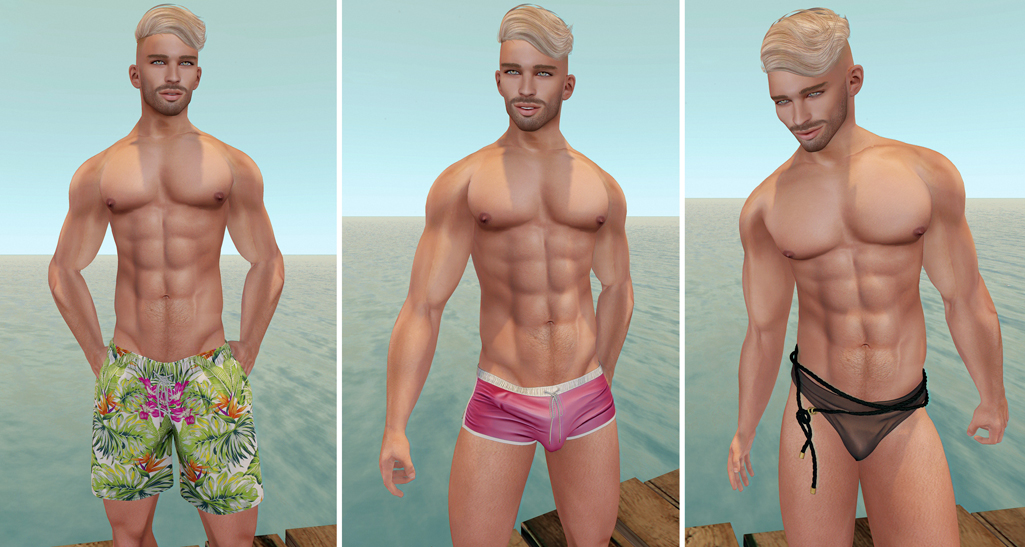 Finding some nice swimwear for this body is hard. Here’s another case where the great brands like Thirst and Noche don’t bother with this body, so you’re stuck with more obscure brands. I guess the String Thong by RGDW isn’t a bad consolation price. The knots can be added separately, so we’ve got to give it some points for that.