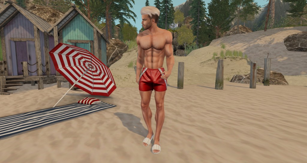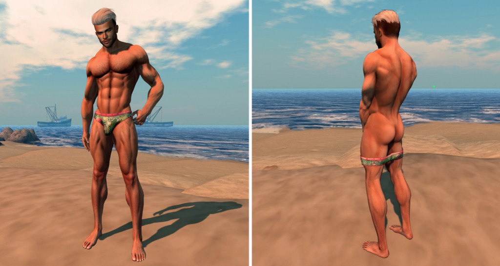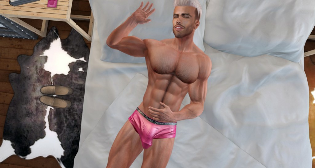Meanwhile I discovered Quite, a brand with just a few items but they’re sexy and all come in the Aesthetic size. I was vaguely aware of them already, but they made another bleep on my radar with their newest speedo. It comes in various sizes and I splashed out on the mega pack which has a ridiculous number of texture options. You can even be naughty and make it see through or “accidentally” drop it down to your knees. Various bulge shapes are included for your comfort.
