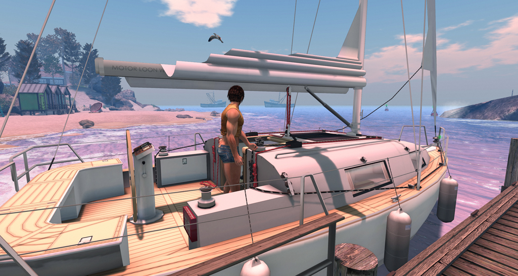 The closest I’m getting to that feeling of freedom today in SL, is with an avatar in a carefree outfit in his brand new ripped tank top and slightly less new pair of jeans shorts (wolf whistle goes here) having a gay old time on a Motorloon sailboat. If I close my eyes I can hear the gulls…. Mine! Mine! MINE! (if you don’t get that seagull reference, you need to watch Finding Nemo!)