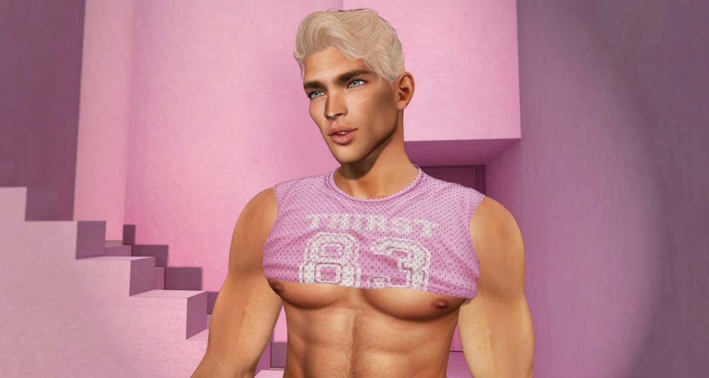 One of the two items in November’s JOCKD set by Thirst is the incredibly sexy Varsity Shorts, which are rigged for Belleza Jake and Legacy Meshbody. The shorts go very well with the Thirst Crop Top Jersey, which you can wear with Belleza Jake or Signature Gianni (so basically this complete outfit would only work with Jake). The fatpack of the Kurtov sneakers by Versov has served me particularly well, as it has so many colours you can make these sneakers go with most outfits.