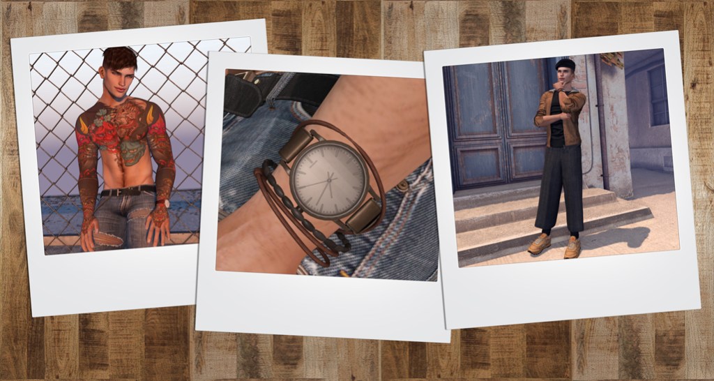 Apart from a descent pair of shoes, you’ve got yourself a whole outfit with the Val’More beret, Mossu winter jacket and Clef De Peau loose jogger pants in stylish herringbone fabric. The jacket and pants are both rigged for various mesh bodies. Even the pose is a ManCave gift by IDK.