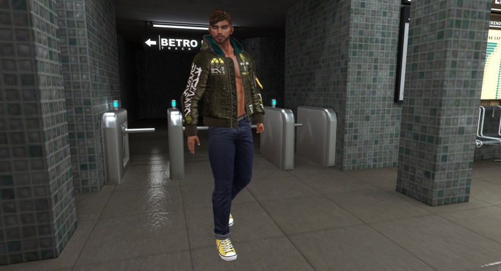 I’m reusing the VYC Shane skin on the Lelutka Guy head in a different skin tone this time. The great thing about VYC skins is that they are all sold as fat packs while they are only marginally more expensive than a single skin tone from other skin creators. The neck seam isn’t great (i.e. it is visible most of the time), but as the skin includes a specific applier for this body, everything lines up perfectly.