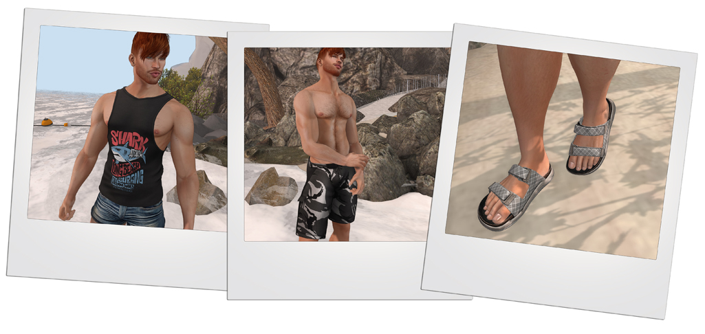 - A cute “Shark Attack” tank by American Bully, obviously not suitable for the fainthearted among you who tut and roll their eyes at a bit of nipple exposure. (Rigged for Aesthetic, Jake, Geralt, Gianni, Slink and TMP)