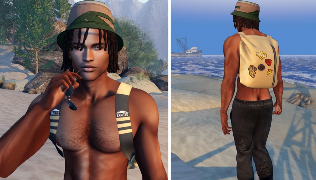 There’s more beautiful skin fun with Trey by Stray Dog. You get it in three dark skin tones suitable for Catwa mesh heads (applier and bom layers). At the risk of sounding like a broken record, the matching body skin is not included, so you need to gallop along to Stray Dog to pick one up for L$490. The Zeke Dreads by Camo are also a gift at Access. If you’re planning to making a day out of it, you may want to take the Robert bag by Exalted. I’m using the Catwa Victor head and Legacy mesh body.