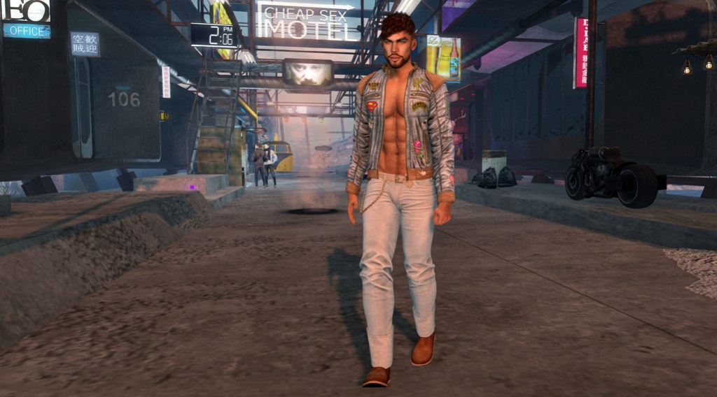 In the previous three episodes of Shopping For David I experimented a little with skins and heads. This time I find myself returning to an old favourite with this body: the Catwa Stanley mesh head and Birth Drogo skin for catwa heads + their Omega applier for the body. I made the effort to have a look in Marketplace to see if perhaps I can get some new(ish) underwear for David, but I don’t think it will ever happen. There’s a bunch of speedos, all made with the same full-perm mesh item and there are some appliers, but when it comes to a nice pair of underpants, other than NX-Nardcotix‘s own Darrel underwear set, there’s nothing. I guess David is going commando most of the time.