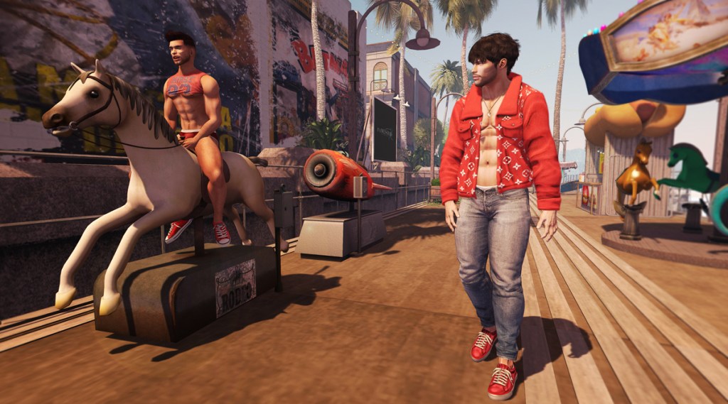 The hot as hell underwear and swimwear brands like Thirst and Noche don’t support this body, but it comes with its own free pair of tighty-whities and these boxer briefs have been sent out into the grid as a full perm item, which means you can find a ton of texturing variations when you have a look around. RGDW Couture and No Shirt Sherlock are some good places to start of with. For something a little bit more original in the underwear and swimwear department, you can go take a look at Quite and Guilty.