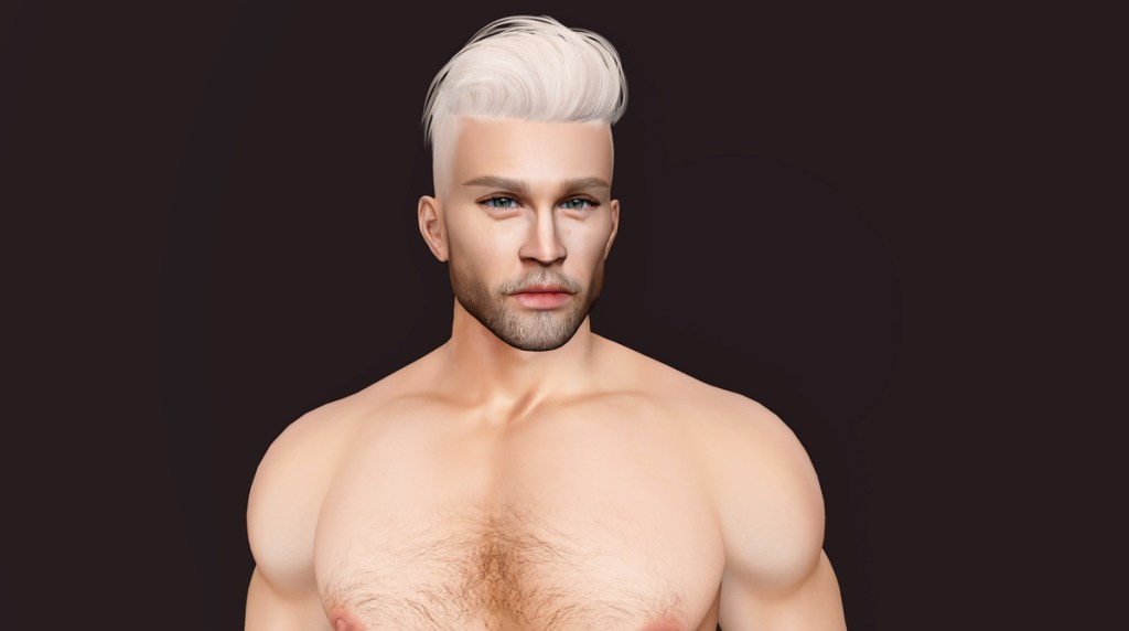 For my Tim shape, the skin I used was Evan by Birth for Catwa mesh heads and it still works but I can’t make the eyebrows look quite right. The good news is that the skin includes a browless version and the head comes with built-in HD eyebrow options. The great thing about these is that, on top of being able to change the appearance of the eyebrows by editing your eyebrows shape, the hud for the Akeruka Advanced head allows you to move the brows up and down and closer to each other or indeed further apart. Eve the size (meaning the width) of the eyebrows can be adjusted. I absolutely adore these little personalisation options. My Tim look now has considerably heavier eyebrows than it had before, but I kinda like it. The hair is by Wings and the eyes are by Avi-Glam, applied to the rigged eyes that come with the head. Make sure you wear the alpha that hides system eyes and you’ll need the Omega relay for Akeruka to be able to apply the texture on the eyes. I’m using a facial stubble that comes with the skin and the HD beard that comes with the head on top of that. The body is Legacy Meshbody.