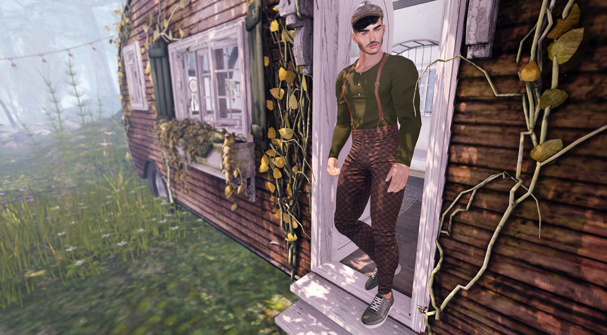 I’ve even given my attire some thought in that daydream. Because it’s not full-on camping, I think I can get away with something that is comfortable and casual without being the kind of thing you see at stores that sell tents. While I’m at it, I’ll imagine slightly warmer weather too than what I’m currently living with in reality. The Will outfit by Noche does the trick for me. Noche’s designer got inspired by Taylor Swift’s video for her song Willow and he did a great job on the details in this outfit. As usual the fatpack is almost flowing over with colour options, so I spent some time mixing and matching to my heart’s content, until I settled on greens and browns that suit my imaginary green surroundings.