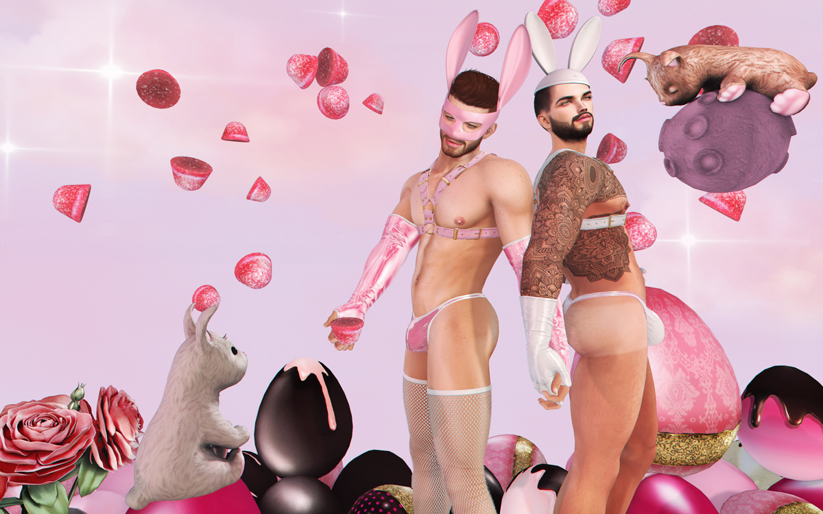 If you’ve been doing any kind of Easer egg hunting in Second Life™, chances are you’ve picked up at least one pair of bunny ears. If you want a pair in latex, you should head over to Cheerno/Nexus and look for the wall with group gifts. There you’ll find both bunny ears options as shown above and there’s no group joining fee, so you’ve go no excuse for not getting your Easter kink on.