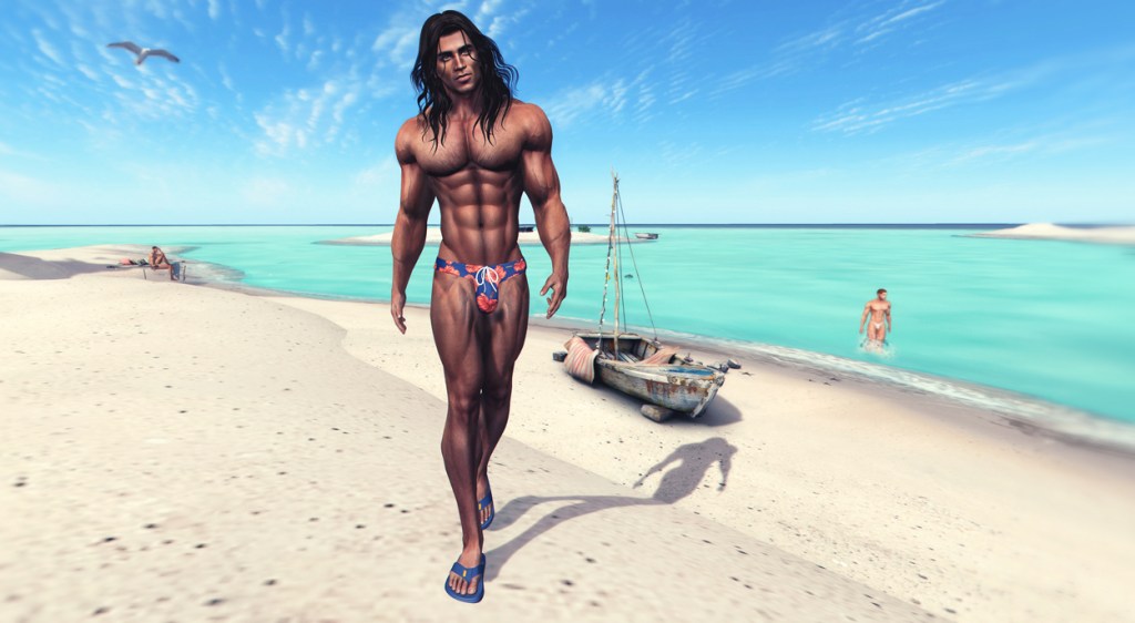 When one goes for this kind of muscular look, chances are one will not want to cover up it up too often… Any excuse to go shopping for briefs and speedos works for me. Sadly the Aesthetic body has never been supported by my favourite “lingerie” brand Noche, but I recently discovered that Cheerno has some sexy little numbers for Enzo (which is another name for this body). So I had a good look around at Cheerno’s main store and treated myself to a new pair of briefs, featured in the cover image for this blogpost. Of course I then still needed something skimpy for the beach so I grabbed these sexy speedos and cute flip-flops. Make sure you check every Cheerno item first before you purchase it, as not everything comes in an Aesthetic/Enzo size.